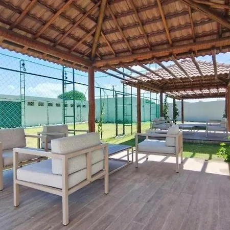 Praia De Carneiros - Max Carneiros Suites Bl C - Novo Tamandare is located 2.5 km from the Saint Peter Church and a 25-minute stroll from the Carneiros Beach. This apartment includes a terrace that overlooks the pool and features a swimming pool and a kitchenette.